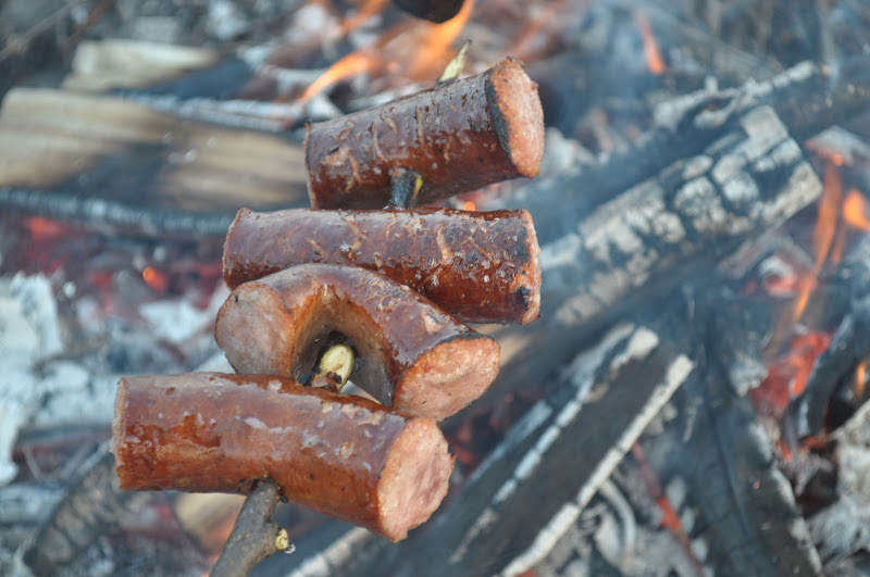 Wielkie ognicho z pieczeniem kiełbasy ziemniaków