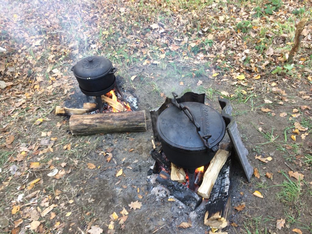 Kilka kociołków z prażonymi