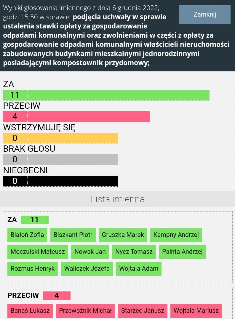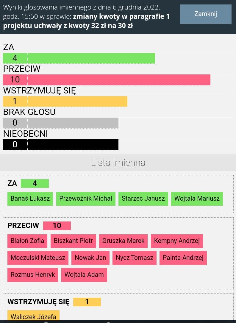 Podczas sesji padła propozycja ze strony Radnego Michała Przewoźnika, aby nie podnosić aż tak drastycznie opłaty w czasie kryzysu i zubożenia społeczeństwa jednak została odrzucona przez koalicja NE/PiS