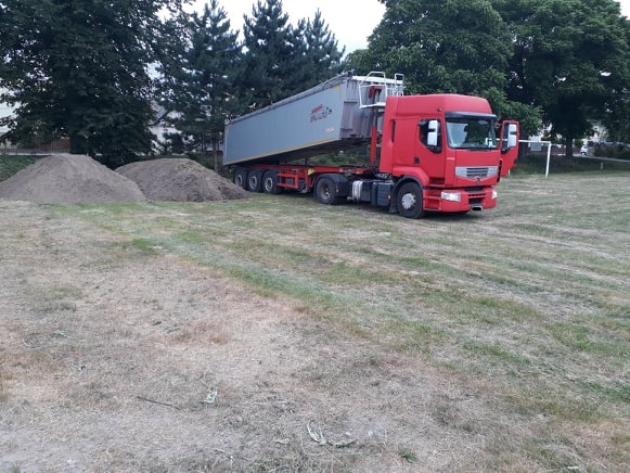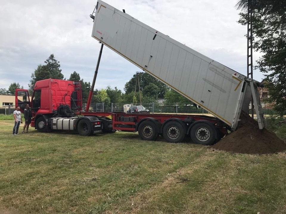 W piątek na boisko zostało przywiezione 96 ton ziemi ufundowane przez firmę MAN-TRANS z Tychów. Transportem i logistyką zajął się Radny Banaś.