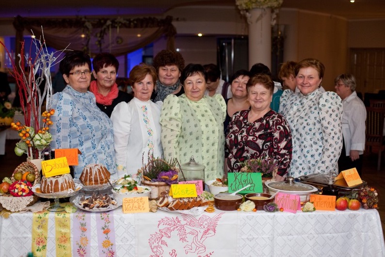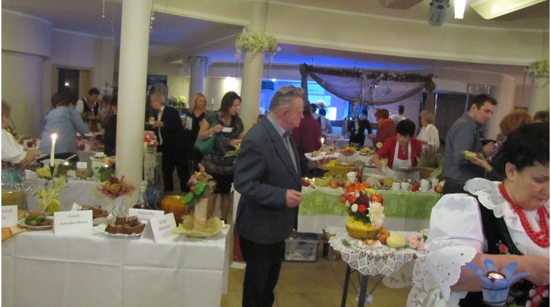 W Domu przyjęć „Markowy” w Porębie spotkały się przedstawicielki 21 Kół Gospodyń Wiejskich, które na specjalnie przygotowanych i pięknie udekorowanych stołach prezentowały przygotowane przez siebie potrawy. Na początku spotkania Wiceprezes Stowarzyszenia – p. Renata Dyrda powitała zebrane uczestniczki projektu, p. Remigiusza Rączkę jak również przybyłych gości, wśród których znaleźli się przedstawiciele Zarządu Stowarzyszenie LGD „Ziemia Pszczyńska” – p. Bernadeta Lampart, p. Michał Pudełko oraz p. Andrzej Nelec. Na spotkaniu obecni byli również przedstawiciele lokalnych władz samorządowych – Burmistrz Pszczyny – p. Dariusz Skrobol, Starosta Pszczyński – p. Paweł Sadza, Wójt Gminy Suszec- p. Marian Pawlas, Wójt Gminy Kobiór – p. Stefan Ryt, Wójt Gminy Goczałkowice- Zdrój – p. Gabriela Placha, a także Wójt Gminy Miedźna– p. Bogdan Taranowski. W spotkaniu wzięli także udział przedstawiciele organizacji współpracujących z Kołami Gospodyń Wiejskich, obecny był p. Józef Wydra – prezes Gminnego Związku Rolników, Kółek i Organizacji Rolniczych w Pszczynie, p. Anna Rogala-Romanek Kierownik Powiatowego Zespołu Doradztwa Rolniczego w Pszczynie, p. Łucja Krutak – prezes Gminnego Związku Rolników, Kółek i Organizacji Rolniczych w Miedźnej oraz p. Maria Adamczyk – naczelnik Wydziału Rolnictwa, Leśnictwa i Ochrony Środowiska. Nie sposób wymienić wszystkich z imienia i nazwiska, nie mniej jednak serdecznie dziękujemy za to, iż przybyli na nasze spotkanie.