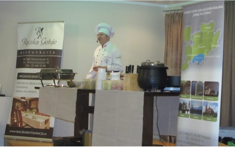 Spotkanie uświetniła obecność śląskiego kucharza – p. Remigiusza Rączki, który na tę okazję przyrządził specjalne dania. A były to: żur na kwasce z kapusty, karminadle górnośląskie ze śledziem oraz ciaperkapusta. Kucharz swoje wystąpienie ubarwił ciekawymi opowieściami, opowiadanymi w gwarze śląskiej. Kulinarne spotkanie upłynęło zatem w biesiadnej atmosferze.