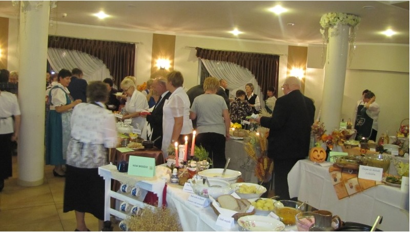 Po przywitaniu każde z Kół opowiedziało krótko o daniach jakie zostały przygotowane, po czym zaproszono wszystkich do degustacji wspomnianych potraw. Kolorowe stoły, unoszące się, zachęcające aromaty nadały spotkaniu wyjątkowy charakter, zaś reprezentantki KGW również wizualnie, prezentowały poprzez pszczyńskie stroje regionalne – tradycyjną obrzędowość naszego regionu.