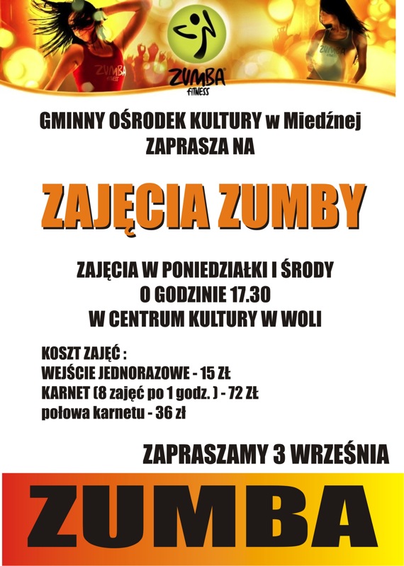 Gminny Ośrodek Kultury w Miedźnej zaprasza na zajecia zumby.