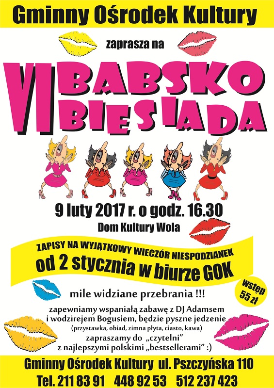 Zapraszacie na Babskie biesiady ?! Od 02.01.2017 godz 8.00 sprzedawane są bilety a co się okazuje godz 8.00 przyjeżdżam do biura GOK zero ludzi nr biletu już chyba 80, a znajoma o godz 8.45 przyjeżdża i się okazuje że biletów brak.Co to za polityka ,gdzie tu jakaś sprawiedliwość,powinno nie być rezerwacji telefonicznych,które rezerwują po 20 biletów.Co to ma być ????? Wpierwszej kolejności powinny być bilety dla tych którzy specjalnie jadą na Wolę i od razu płacą za bilet a nie tylko przez telefon a później rezygnująboktóś się rozchorował,któs nie dostał urlopu. Bezsensu !!!
