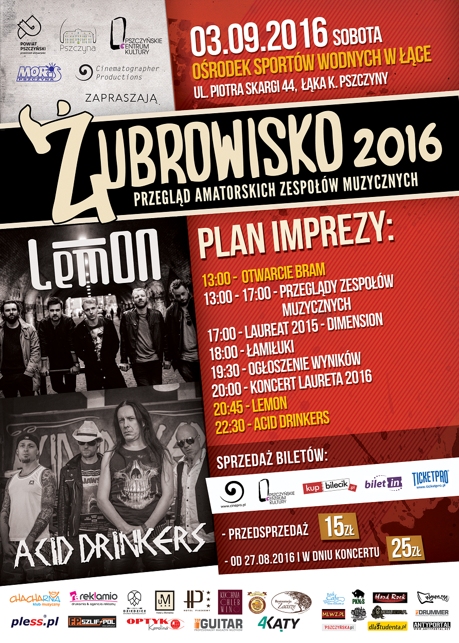 Już po raz 13. młodzi muzycy będą mieli okazję spróbować swoich sił w Przeglądzie Amatorskich Zespołów Muzycznych „Żubrowisko”. Zwycięzcy zagrają support przed gwiazdami wieczoru – LemON i Acid Drinkers.
